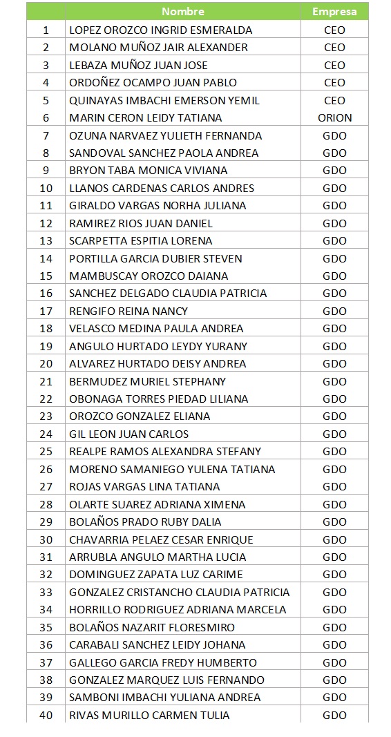 ¡Nos apasiona brindarte buenas noticias! Damos a conocer los asociados ganadores de los Bonos de Viaje. La adjudicación de los bonos fue realizada el 24 de abril 2026 de manera aleatoria utilizando la herramienta digital, en presencia virtual del Sr. Julián Berbeo, Sra. Ana Isabel Tutistar miembros del Comité de control Social, la Sra. Stephany Bermudez, profesional administrativa de Fegoccidente y Sra. Carolina Parada Triana Ejecutiva del Fondo de Empleados.